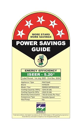Energy Rating : 5 Star – Best in class efficiency | Annual Energy Consumption: 780.60 Units Per Year| ISEER Value: 5.20 The star rating is as per BEE guidelines