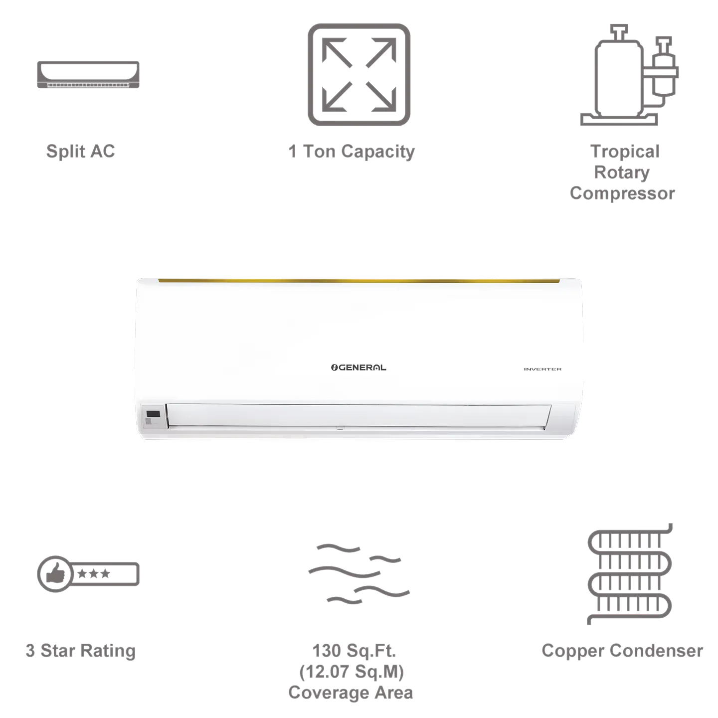 O General 1.5 Ton 3 Star Fixed Speed Split AC (Copper Condenser, Mildew Resistant Filter, ASGA18BMWA-B)